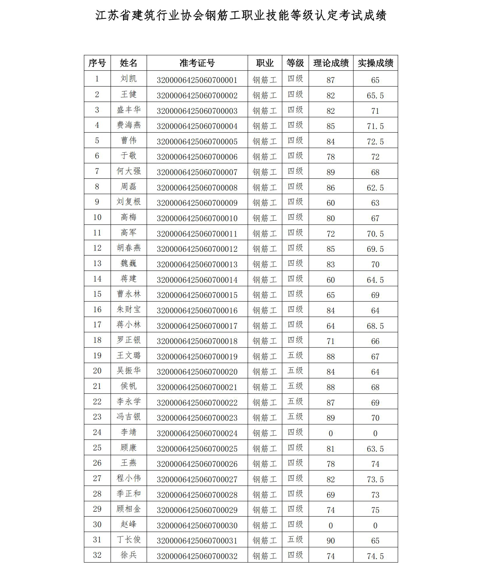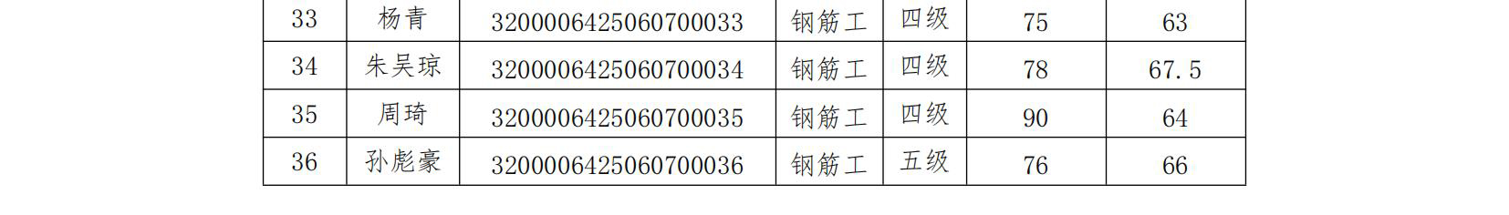 我會于2025年6月7日組織開展了鋼筋工四級、五級職業(yè)技能等級認定(認定批次號:2025-32000064-00009),現將考試成績公示如下,公示期5天。