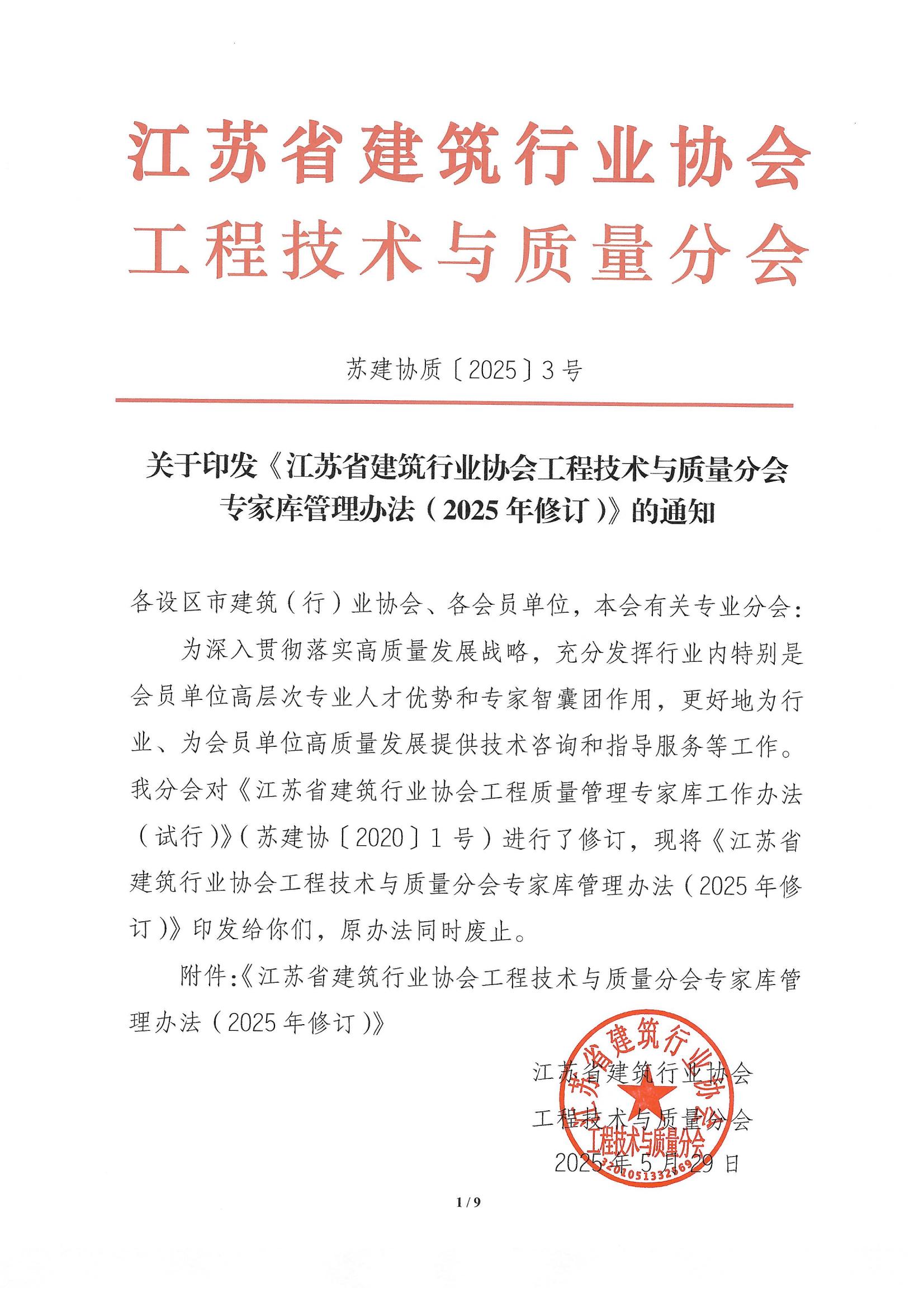 附件:《江蘇省建筑行業(yè)協(xié)會(huì)工程技術(shù)與質(zhì)量分會(huì)專家?guī)旃芾磙k法(2025年修訂)》