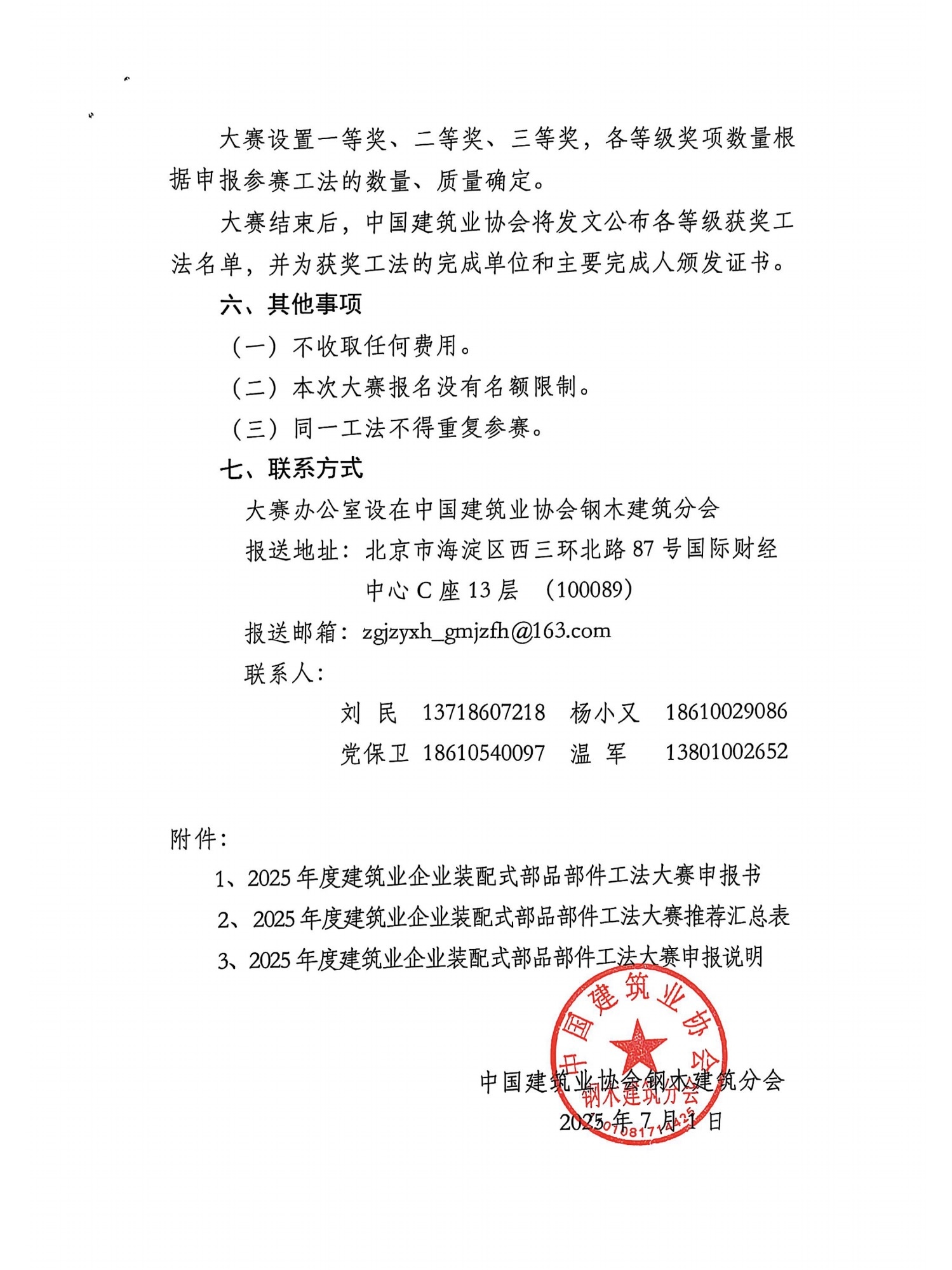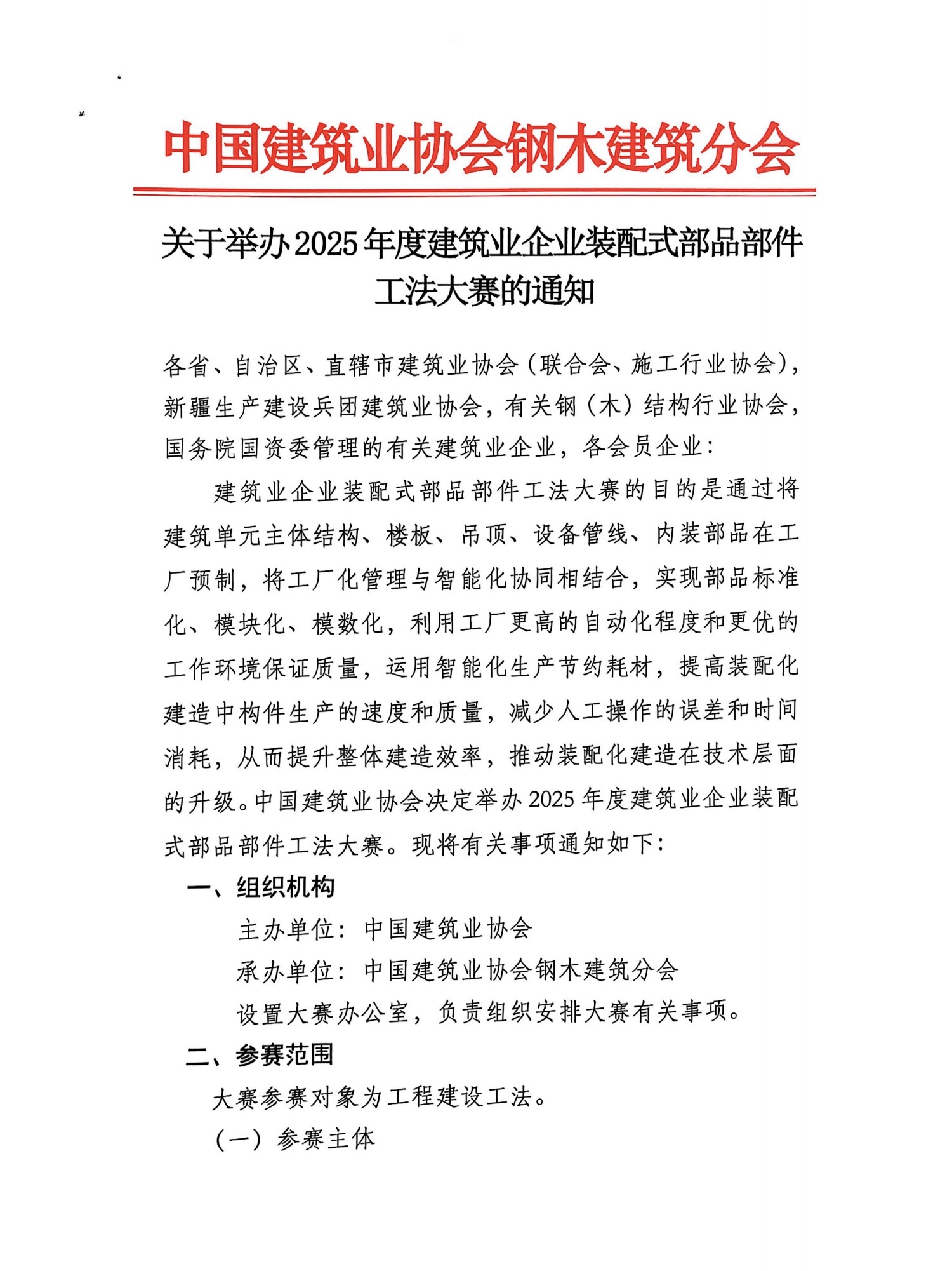 2025 年度建筑業(yè)企業(yè)裝配式部品部件工法大賽申報(bào)書